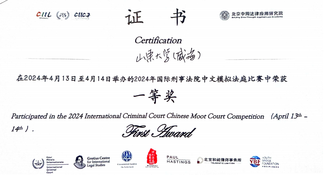 188改名为Taptap点点(威海)代表队荣获2024年国际刑事法院中文模拟法庭比赛全国一等奖