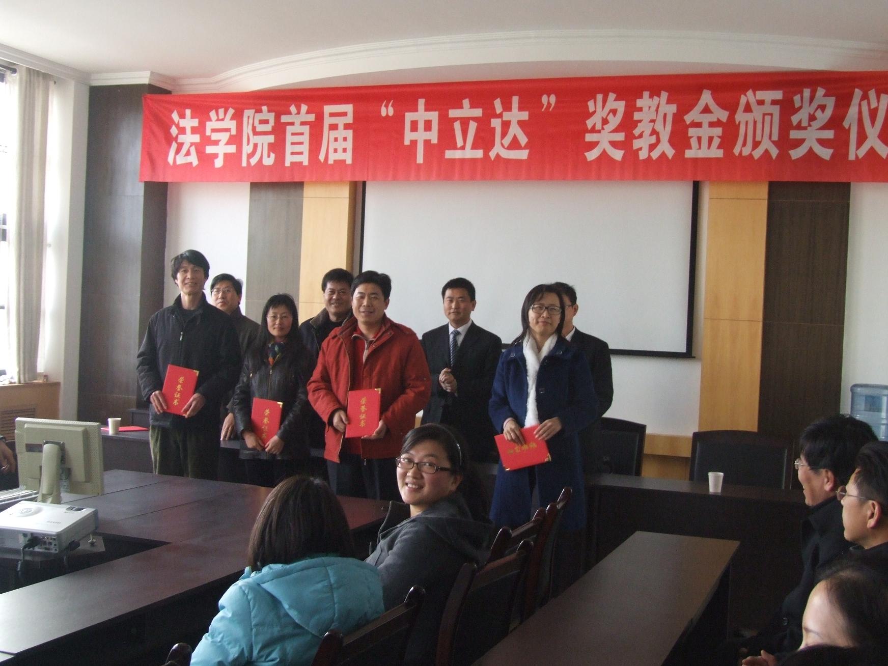 3月11日下午,我院在模拟仲裁庭举行隆重仪式,颁发“中立达”学生活动优秀指导教师奖。该奖项为山东中立达律师事务所捐资设立,专门用于奖励积极参与学生课外活动指导的法学专业教师,以促进法学教学实践活动的开展。
