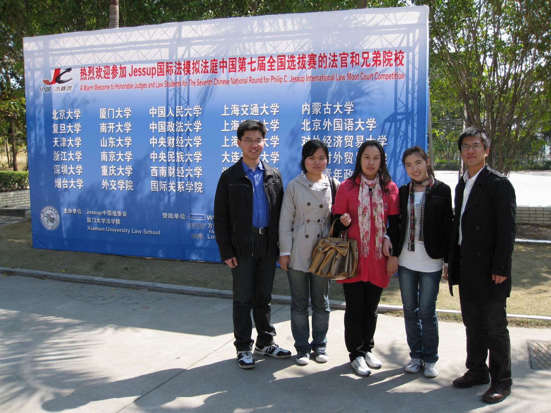2009年2月18日至20日,厦门大学举办第七届“Philip C. Jessup国际法模拟法庭辩论赛”中国赛区选拔赛。为切实体会赛场氛围,进一步了解比赛规程,学习往届参赛队伍经验,在院领导支持下,由方芳老师带队,率领我院孙滨、李金桥、李晓慧、蒋东东四名队员远赴厦门进行观摩,现场取经。