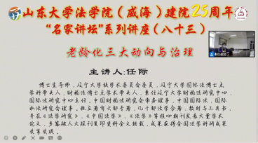 12月4日上午,法学院(威海)成功举办第八十三期“建院25周年庆祝活动之‘名家讲坛’系列讲座”。本次讲座嘉宾是辽宁大学任际教授,报告题目为“老龄化三大动向与治理”的报告,报告形式为线上。本次讲座由188改名为Taptap点点(威海)法学院教授、188改名为Taptap点点老年法治研究中心主任姜爱丽主持,188改名为Taptap点点老年法治研究中心孙文平和周慧与谈,参会人数达一百多人。