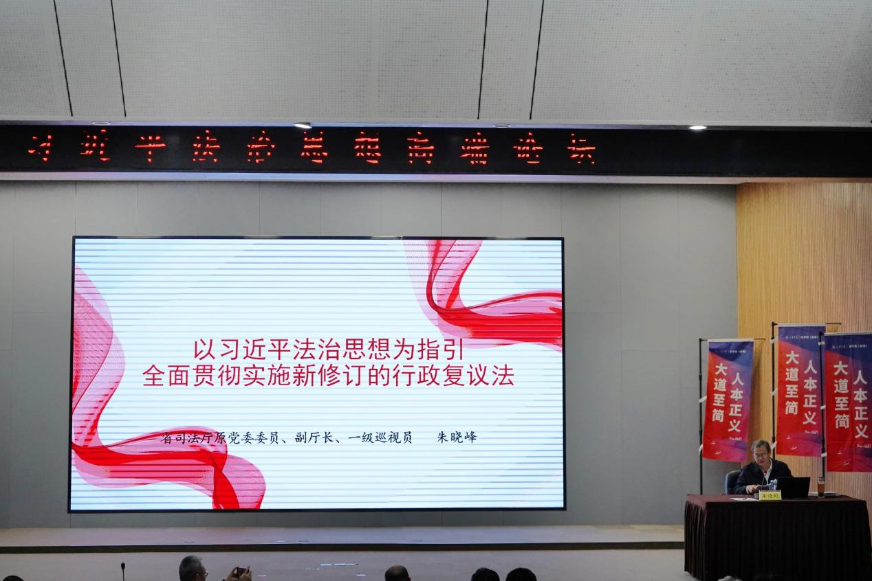 朱晓峰围绕本次行政复议法修订,从深刻认识新修订行政复议法的重要意义,准确把握新修订行政复议法的重要内容,抢抓实施新修订行政复议法的重大机遇三大方面展开。一是深刻认识新修订行政复议法的重要意义,修订行政复议法是贯彻落实习近平法治思想和党中央决策部署的重要举措,是推进国家治理体系和治理能力现代化的有力保障,是实现行政复议实质性化解行政争议的客观要求。二是准确把握新修订行政复议法的重要内容,朱晓峰厅长详细介绍了新修订行政复议法的主要亮点,包括扩大行政复议受理范围,实行行政复议前置规定,调整优化行政复议管辖制度,丰富和充实便民举措,完善行政复议审理程序,确立行政复议委员会制度,强化对规范性文件的审查力度,建立行政复议调解和解制度,优化行政复议决定体系,深化行政复议监督执行职能十大方面。三是抢抓实施新修订行政复议法的重大机遇,朱晓峰指出,一要提高政治站位,切实增强做好行政复议工作的使命感,二要明确职责定位,加快推进行政复议理念现代化,三要找准工作方位,形成化解行政争议的工作合力。