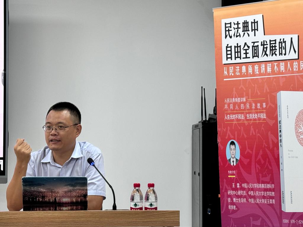 王雷教授首先强调了“坚持以人民为中心”这一核心原则在我国《民法典》编纂过程中的重要意义,并结合具体案例,讲解了《民法典》如何体现对未成年人、老年人以及残疾人等社会弱势群体的特别保护。其次,王雷教授深入分析了近代和现代民法中“人”的概念,指出现代民法中的人不仅是理性经济人,更多的是一个具有社会责任和伦理规范的个体。再次,王雷教授着重介绍了《民法典》中的“伦理人”“情谊人”的角色定位,探讨了《民法典》如何在友情和社会关系中体现宽容和情谊。最后,王雷教授讲授了《民法典》中“团体人”“生态人”的规范内涵。《民法典》规定法人和非法人组织在决策时必须遵循法律和章程的规定,体现了法律对集体行为规范的重视;而在生态保护方面,《民法典》要求民事主体在从事活动时应当有利于节约资源和保护环境,反映了对可持续发展的关注。