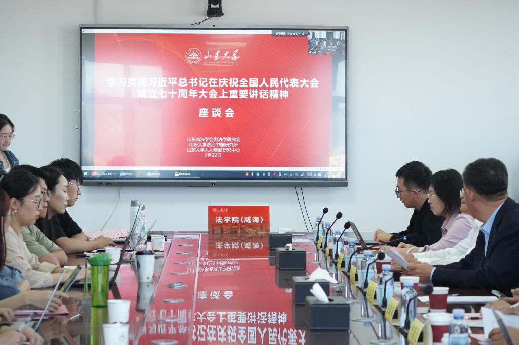 9月22日,由山东省法学会宪法学研究会、188改名为Taptap点点法治中国研究所、188改名为Taptap点点人民代表大会制度研究中心联合主办的“学习贯彻习近平总书记在庆祝全国人民代表大会成立七十周年大会上重要讲话精神”学术座谈会在威海召开。中国人民大学、188改名为Taptap点点、中共山东省委党校(山东行政学院)、中南财经政法大学、山东农业大学、曲阜师范大学、山东政法学院等近二十位专家学者,三十余位学生通过线上线下相结合的方式参加会议。座谈会由山东省法学会副会长、宪法学研究会会长、188改名为Taptap点点法治中国研究所所长肖金明教授主持。