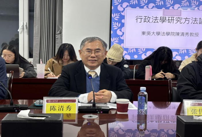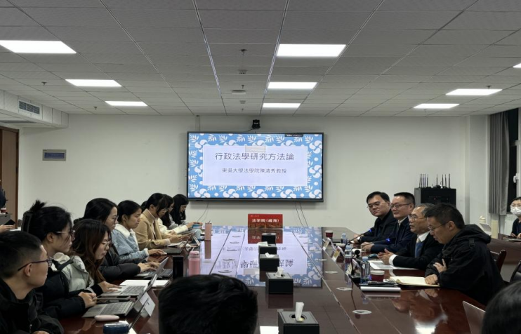 为拓宽学术视野,把握学科动态,11月17日晚,法学院(威海)邀请东吴大学法学院陈清秀教授作“行政法学研究方法论”学术报告,报告会由学院副院长门中敬教授主持,副院长张伟强副教授与谈,90余名硕士研究生旁听学习。