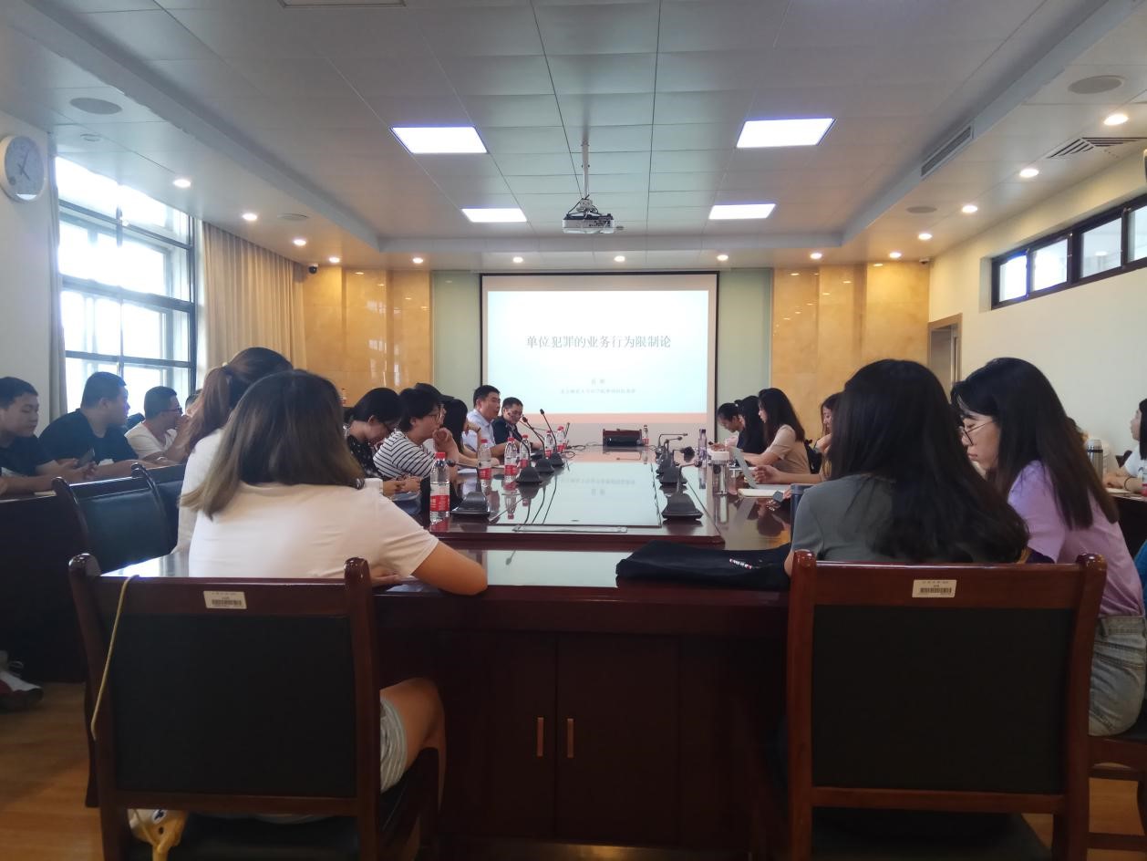 2019年9月2日下午,我院邀请袁彬教授主讲玛珈法政论坛,发言主题为“单位犯罪的业务行为限制论”,本次学术讲座由副院长刘军教授主持,我院博士研究生和硕士研究生参加了此次活动。