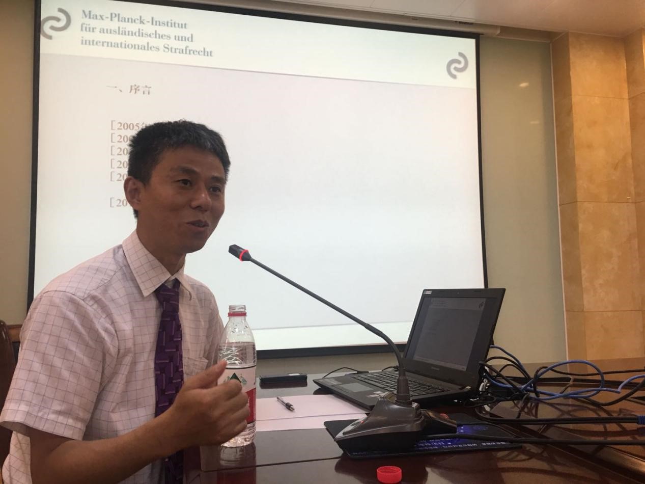 周遵友教授为德国马克斯普朗克外国刑法与国际刑法研究所(简称马普刑法所)高级研究员、中国区主管,他首先介绍了德国马普所以及近年来中国刑法学界与德国马普所之间的学术往来。他讲到,德国马普所是世界上研究刑法的顶尖科研所,掌握着大陆法系刑法研究最前沿的学术动态。近年来,越来越多的中国留学生、访问学者选择前往德国马普所深造。关于“学术诈骗罪的罪与罚”的主题报告中,周遵友教授从中德比较的视角,分四个方面介绍了自己最新的研究成果。首先,他介绍了几个发生在中国的学术不端典型案例,引出何为学术诈骗的问题;其次,就“如何认定诈骗罪”,周遵友教授从我国刑法及关于诈骗罪的规定以及中国学界关于诈骗罪中数额条款的性质认定,解析了上述案件是否符合诈骗罪的构成要件,进而引出财产损失这一关键问题;其后,就“如何认定财产损失”问题,周遵友教授在这一部分主要介绍了德国判例中的做法及刑法学界的理论观点,他认为,基于人格缺陷的学术不端也是学术诈骗的表现之一,诈骗罪中的财产损失并非仅指现实的损失,还包括风险损失;最后,周遵友教授通过自己的论证过程得出结论,即对学术诈骗的行为的刑法规制没有必要单独设置“学术诈骗罪”,而利用刑法中已有的普通诈骗罪就可以实现有效规制。