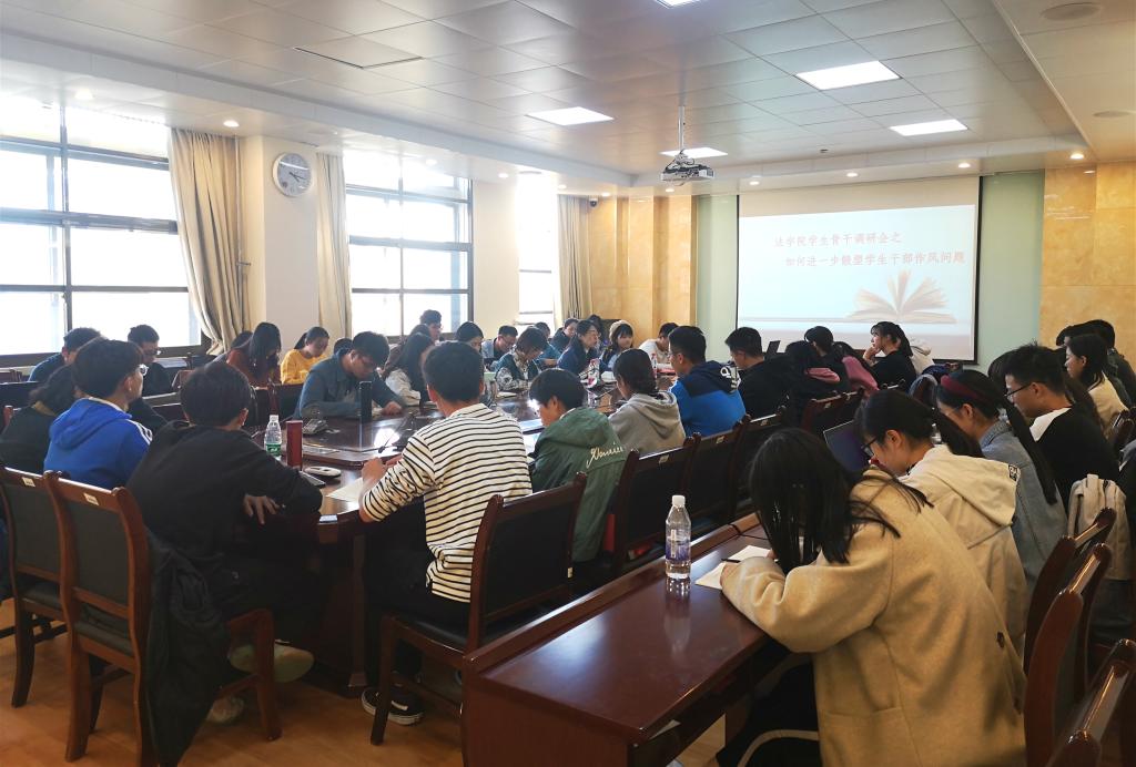 会议伊始,侯丽娜以“守初心,担使命”为切入点,强调学生骨干们在学生工作中要提高政治站位,强化主体意识,真正起到带头作用。她指出,“强院兴校”战略行动的落实,离不开坚强有力的学生骨干队伍。学生骨干们应树立“个人强,班级强,学院强,学校强”的意识,不断提升个人能力和自身素质。在自由发言阶段,与会代表就自己在工作中所遇到的各类问题进行了交流。法学院学生会主席刘亚琪提出,目前学院学生骨干对于工作与学习的平衡不够好,学生干部的综合能力和素养有待提升。2019级司法社会工作班班长许诺作为新生骨干代表,就低年级学生骨干成长的问题做了发言。院团委社会实践部部长邢翱,针对如何提高学院社团骨干凝聚力,阐述了自己的看法和建议。针对这些问题,侯丽娜指出,在工作当中学生骨干的方法和态度很重要,大家应谦虚学习、取长补短,主动向优秀榜样“取经”。她提出学生骨干不能一直低头赶路,也应抬头看路,坚持正确的工作方向,努力做到“一切为了同学,为了同学的一切”。
