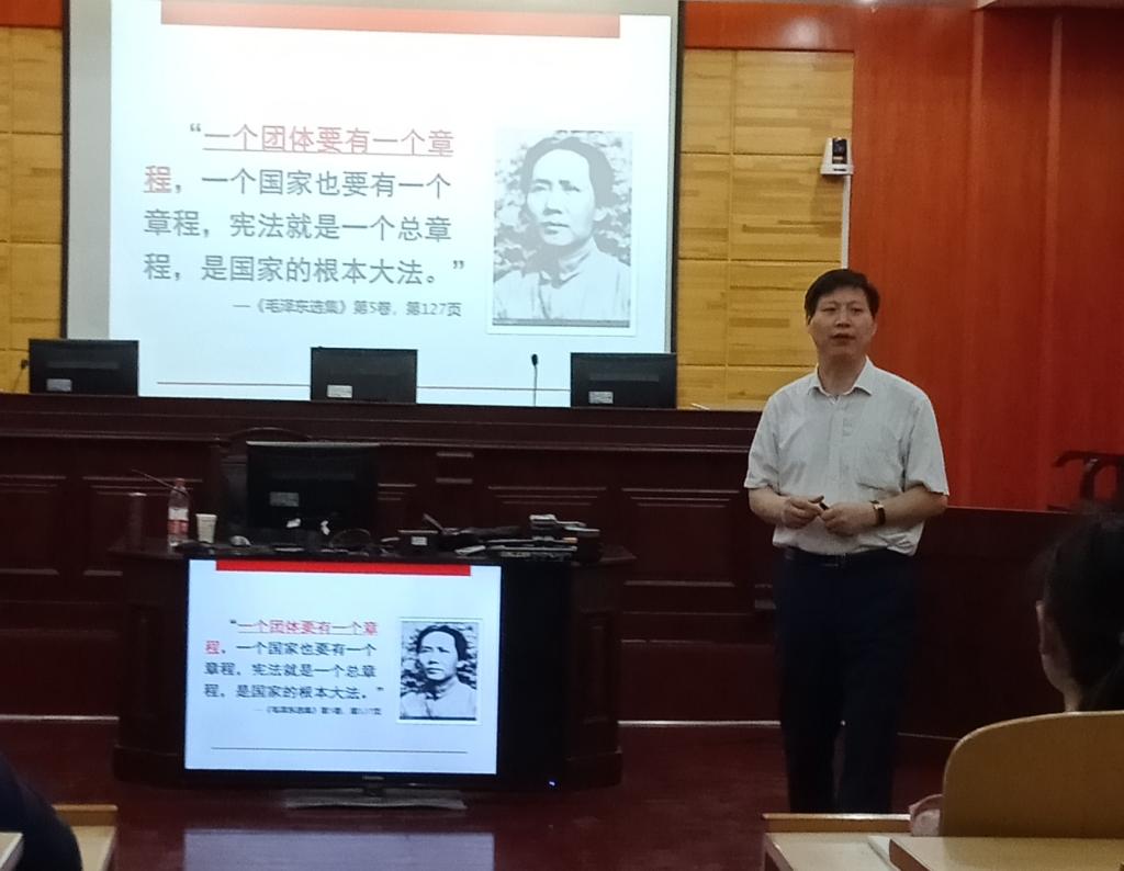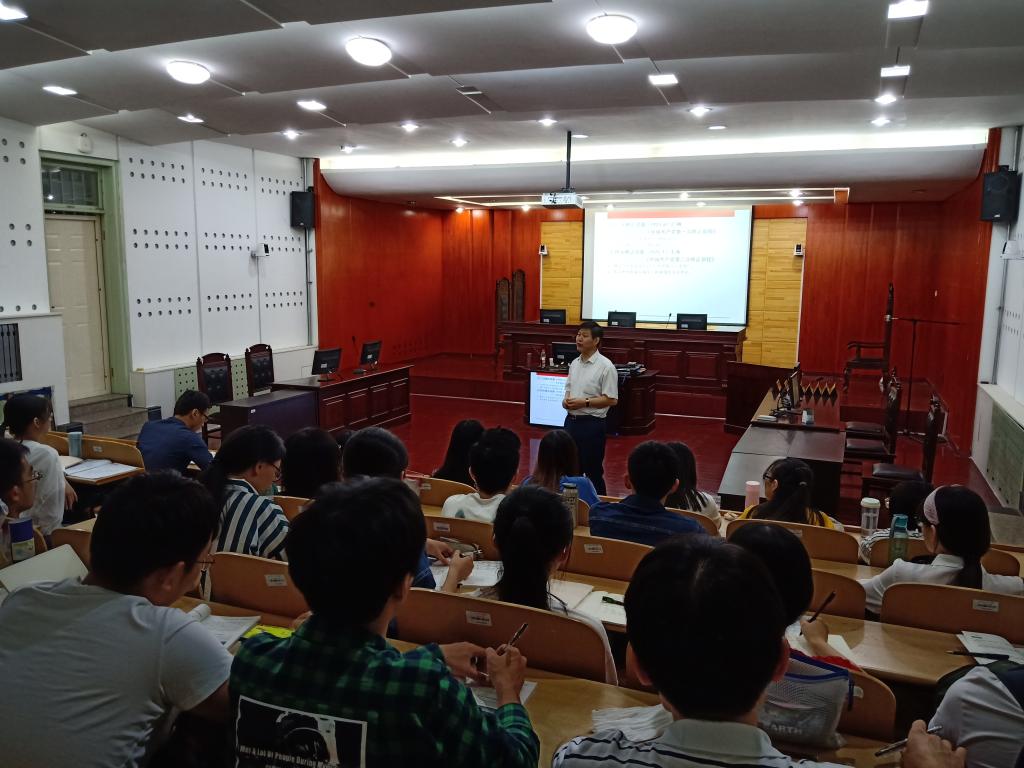 为进一步贯彻落实全国高校思想政治工作会议和党的十九大精神,积极落实“不忘初心、牢记使命”主题教育工作,提升学生党员和入党积极分子的政治素养,法学院于9月26日下午在模拟法庭举办专题党课。法学院党委书记汪全胜为学生党员和入党积极分子做了主题为“学习新党章,开启新章程——《中国共产党章程》解读”的专题党课,法学院学生党员及入党积极分子40余人集中参与了本次党课学习。