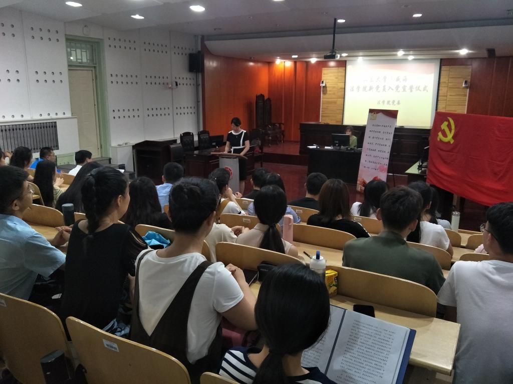 7月4日下午,法学院在模拟法庭举行学生党员入党宣誓仪式。院党委书记汪全胜、副书记侯丽娜、全体辅导员、新入党的学生党员参加了宣誓仪式。仪式由院党委副书记侯丽娜主持。
