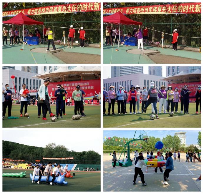 学院教师积极参与到运动会中,与学生共创佳绩。金玄武在50米托球跑决赛中奋勇争先,斩获第一名,时华忠、马春霞分别在男子铅球、女子铅球决赛中获得第三名,黎海鹰在女子铅球、女子沙滩掷准决赛中分获第五名、第七名,张景明在男子足球射门获得第六名,马春霞、呼婕分别在女子跳远、女子足球射门决赛中获得第八名。学院教职工团结协作,在教工协力颠球、勇往直前团体赛中获得第七名,更是在10人跳大绳决赛中取得了第六名的好成绩,在为学院赢得荣誉的同时,也为学生树立了良好榜样。