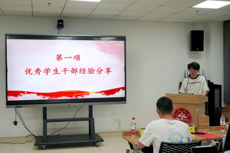 在优秀学生干部经验分享环节,李鹏辉以学生干部的归属感和责任感为切入点,分享了自己在三年团学工作当中的心得体会,强调学生干部应树立“功成不必在我,功成必定有我”的信念,成为同学的坚实后盾。