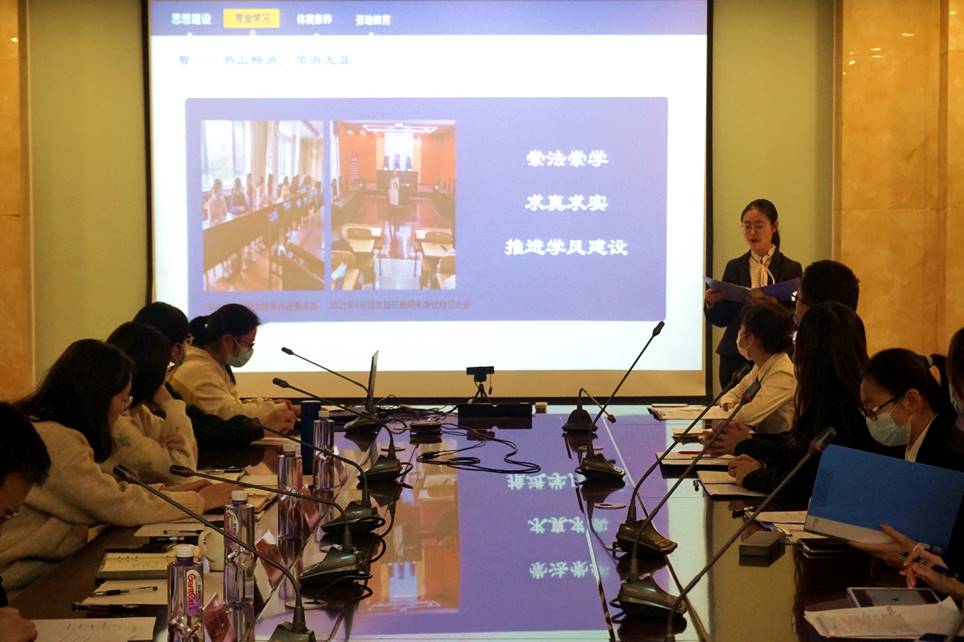 为进一步加强法学院班团建设,发挥先进班集体的典型模范作用,12月6日下午,法学院举办候选校级先进班集体、优良学风班答辩会。法学院党委副书记侯丽娜,团委书记时华忠,法学院辅导员闫玥、周晓政、孙政、刘泽华出席本次活动。2019级和2020级部分班级参加活动,2021级班团骨干旁听学习。