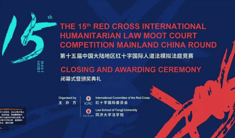 2021年12月10日至12日,第十五届中国大陆地区红十字国际人道法模拟法庭竞赛于同济大学以线上方式举行。本届比赛作为有史以来参赛队伍最多的一届,包括北京大学、清华大学、中国政法大学等高校在内的57支队伍参加,由60位来自国内外的专家担任法官。比赛中,各赛队选手分别代表国际刑事法院的检察官和辩护人,就武装冲突情况下强迫在敌方军队服役、使用《罗马条约》附件所列武器以及攻击受保护物体的等问题,围绕《罗马条约》、《日内瓦公约》以及相关国际法规定,用英文向法官口头陈述。