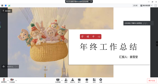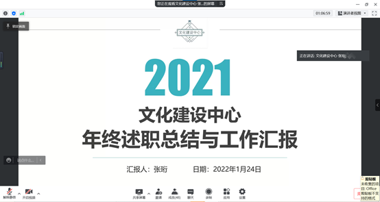 刘儒首先对去年学生工作进行简要总结,肯定了2021年法学院团学组织工作多方面的改革与创新。团委、学生会十一个部门的部长团代表依次对本部门工作进行总结,从年度工作亮点、干事能力培养、工作能力思考、新年工作规划等多个方面展开汇报,并对本部门工作不足之处进行审视与反思。在个人年终述职环节,各部门学生骨干踊跃发言,结合工作感悟与反思,发表个人看法,回顾过去一年里在工作上的进步与不足。胡羽飞表示,不论在工作还是生活中,学生骨干都应该脚踏实地、稳扎稳打、吸取经验、实现进步。邹忻容分享称,学生工作带来的不只是成长,更是快乐与充实。在老师总结点评环节,刘泽华对本年度团学组织的各项工作进行总结,表达了对团学工作的充分肯定以及对各位负责人的希冀与鼓励,同时指出工作中存在的一些问题。他强调,各部门之间要增强沟通与交流,促进了解与配合。此外,刘泽华指出,团学组织应积极提升工作的组织性与纪律性,在学生间做好表率。他还指出,本次述职总结会议是为了让同学们吸取经验教训,及时进行调整,切实为学生服务。最后,周晓政表示,各部门需加强自身建设,培养优秀学生骨干。在未来的工作中机遇定与挑战并存,他希望同学们明确自身定位,不忘初心、牢记使命,铭记全心全意为学生服务宗旨,深入到学生中去,将法学院学生工作提升到崭新高度。