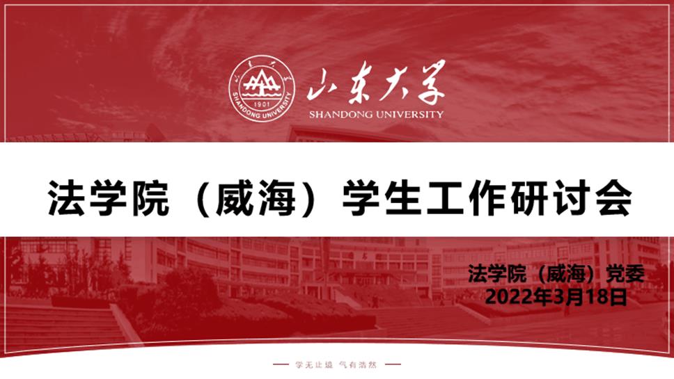 3月18日,为进一步夯实学生工作基础,扎实开展本科生育人工作,深入了解疫情防控期间学生的思想动态,针对性做好学生思想引领与教育服务工作,法学院(威海)召开学生工作研讨会。法学院(威海)党委书记肖金明出席本次研讨会,全体本科生班主任、各年级辅导员、部分教师及学生代表参加会议。学院党委副书记侯丽娜主持本次研讨会。