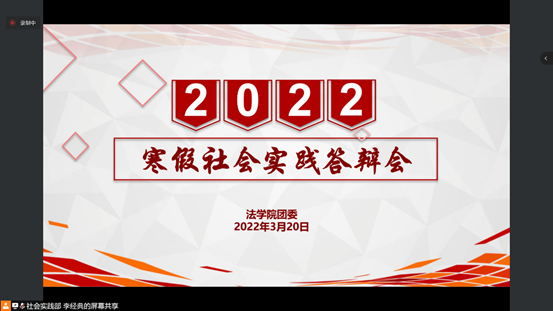 3月20日下午,法学院(威海)举办2022年寒假社会实践答辩会。学院党委副书记侯丽娜,专业教师冯威、贾景峰、马艳朝、刘佳及全体辅导员出席本次活动。各寒假社会实践团队代表、部分2021级学生观摩学习。