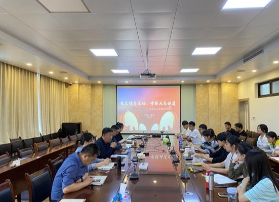 1952年6月10日,毛泽东为新中国体育工作题写了“发展体育运动,增强人民体质”。在题词70周年之际,为激发广大法苑学子体育运动的积极性和主动性,提高学生的身体素质,法学院举办“开展体育活动,增强学生体质”学院工作座谈会,学院党委书记肖金明、党委副书记侯丽娜、副院长张其山、团委书记时华忠、辅导员闫玥、周晓政,各体育队负责人以及文体发展中心负责人出席本次座谈会。