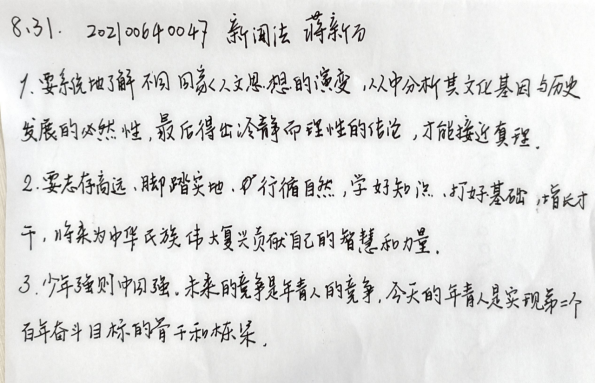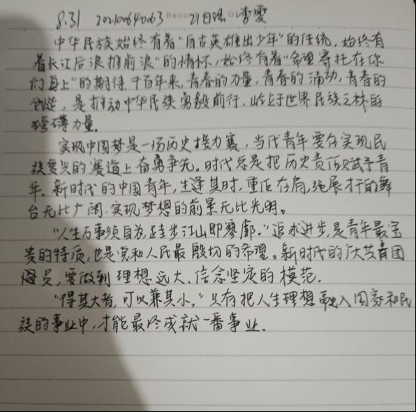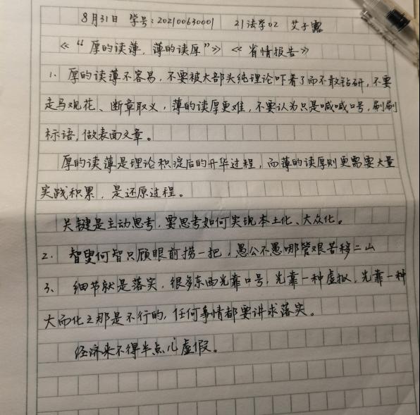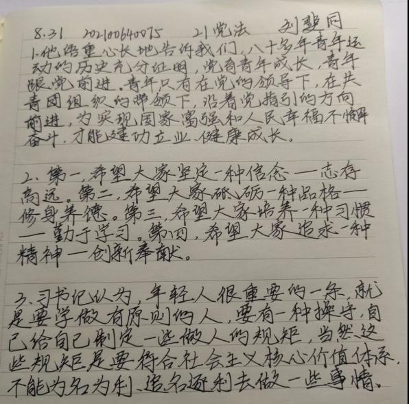 2022年是党的二十大召开之年,也是中国共青团成立一百周年,为更好带领广大学生深刻领会习近平总书记关于青年大学生成长成才的教导与期望,进一步推动习近平新时代中国特色社会主义思想在青年中入脑入心、落地生根,法学院团委纪检部于8月17日-8月31日面向法学院全体学生开展“学‘习’语,担使命”主题教育活动,充分学习新时代青年发展要点,发挥青年骨干成员思想引领和服务青年成长作用,激励团员青年以实际行动迎接党的二十大胜利召开,献礼建团100周年。