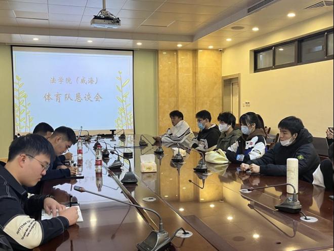 为响应当前国家和党中央对体育工作高度重视的相关号召,激发广大法苑学子参与体育运动的积极性和主动性,10月27日下午,法学院(威海)于学院204会议室召开法学院(威海)体育队恳谈会,辅导员老师周晓政、刘泽华,法学院各体育队负责人代表以及文体发展中心负责人参与本次恳谈会。