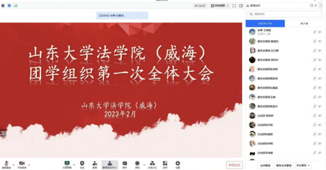 为加强法学院(威海)团学组织成员对各部门工作的认识,增进部门间交流合作,2月1日晚,法学院(威海)于线上召开第十九届团学组织第一次全体大会。2021级本科生辅导员、学生会指导教师周晓政出席会议,团学组织全体人员参与本次活动。会议由综合事务部部长团成员刘馨洁主持。