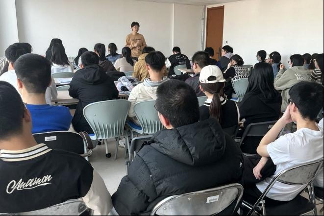 会议伊始,宋佳骏为学生介绍了科研活动的概念及其重要性。他表示,科研活动是指有目的、有方法地围绕一个科学性问题展开调查研究,具有探索未知、解决实际问题、推动学科进步的重要意义。宋佳骏详细讲解了挑战杯、“互联网+”等科研竞赛活动的内容和具体流程,鼓励学生结合自身专业技能和兴趣爱好,积极参与科研竞赛,努力提高自身科研水平和实践能力。他指出,学生参与科研活动不仅有利于增强科研能力,而且也有利于提升综合素质,进一步加强团队协作能力。在互动环节,宋佳骏就学生提出的科研立项、组队分工等问题进行了详细解答,并激励学生保持信心,不断探索,积极投身科研活动,为未来取得良好的科研成果奠定基础。