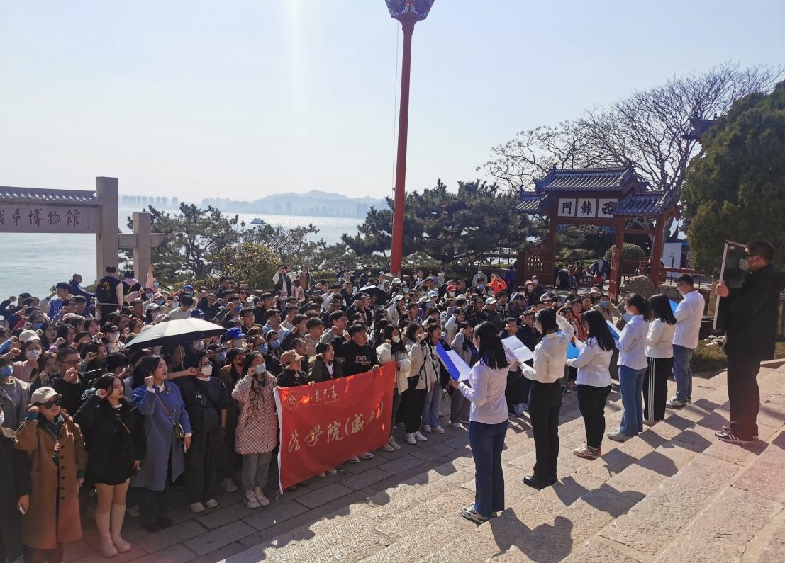 为深入贯彻党的二十大精神,落实习近平总书记关于“大思政课”建设的重要指示精神,充分发挥高校思政课立德树人关键作用,从红色遗址中铭记抗争历史、传承红色基因,3月19日下午,法学院(威海)本科生第一党支部开展以“青春心向党,建功新时代”为主题的刘公岛爱国主义教育活动,2022级本科生辅导员孙政随队参与活动。
