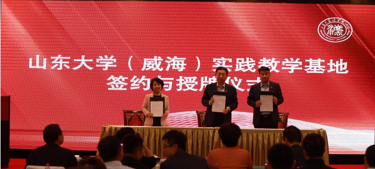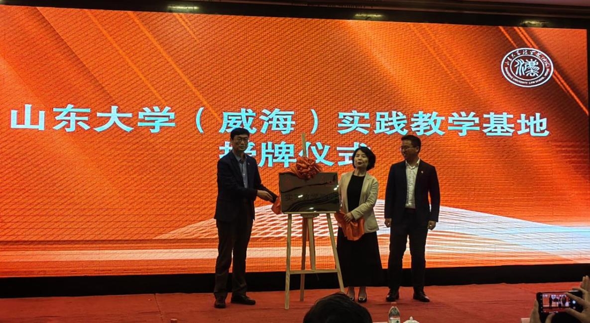 周大白与北京叁依律师事务所主任翟钦蕊、山东睿扬(北京)律师事务所副主任王战辉为学校实践教学基地揭牌。