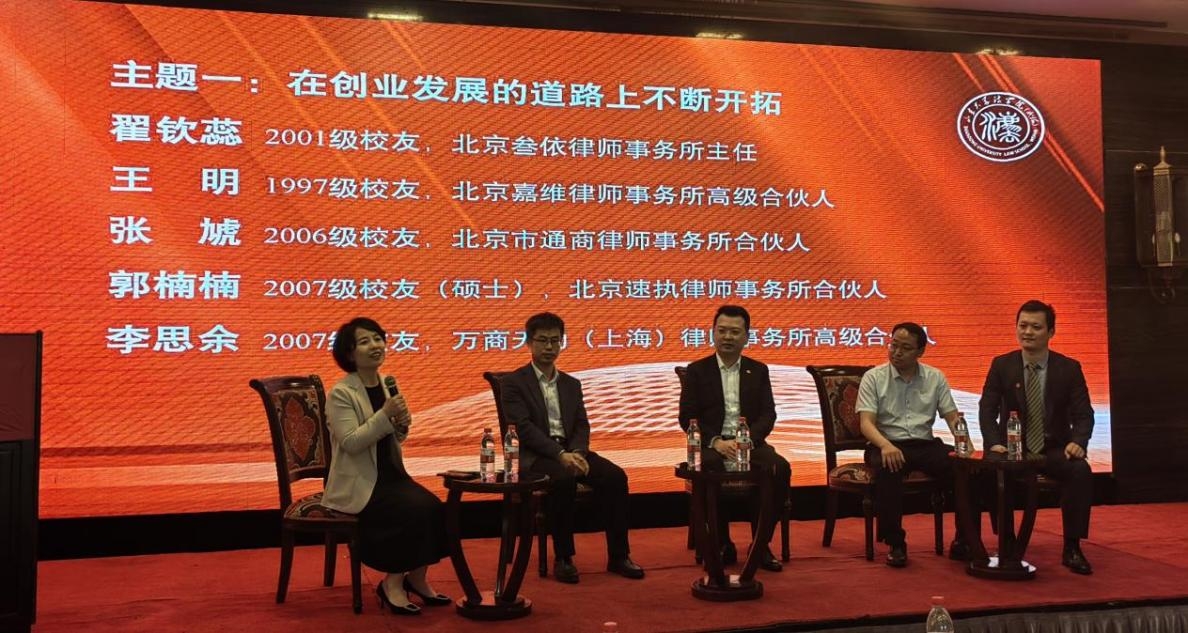大会第二阶段是人才培养高质量发展论坛。优秀律师校友代表翟钦蕊、王明、张虓、郭楠楠围绕执业起源、执业经历、从业收获、困难挑战、价值追求等方面,将律师从业的全貌予以多角度、多层次的深刻展现。