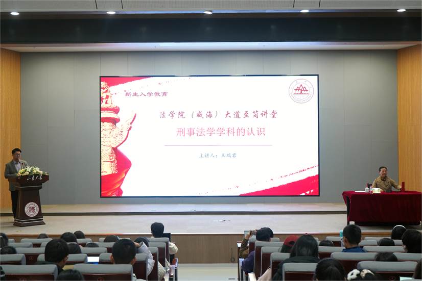 11月9日晚,法学院(威海)举办新生入学教育系列讲座大道至简讲堂之“刑事法学学科认识”。学院教授王瑞君担任主讲嘉宾,本科生班主任崔永春担任主持人,2023级全体本科生参加讲座。