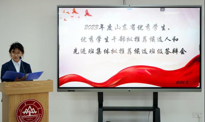 在山东省优秀学生、优秀学生干部拟推荐候选人的答辩环节,候选人们就专业成绩、文体特长、获奖成就、志愿服务、竞赛活动等方面进行自我展示,汇报自己的学习成果和创研心得,同时总结了阶段性的不足之处和对未来的展望,展现出法学院学子敢于奋斗拼搏,笃行不怠的优良风采。在山东省优秀班集体拟推荐候选班级答辩环节,各班代表展示了班委会和团支部建设、实践活动参与、学习风气等各方面的成就,展现出同心协力、守正创新、协同发展的班级风貌。