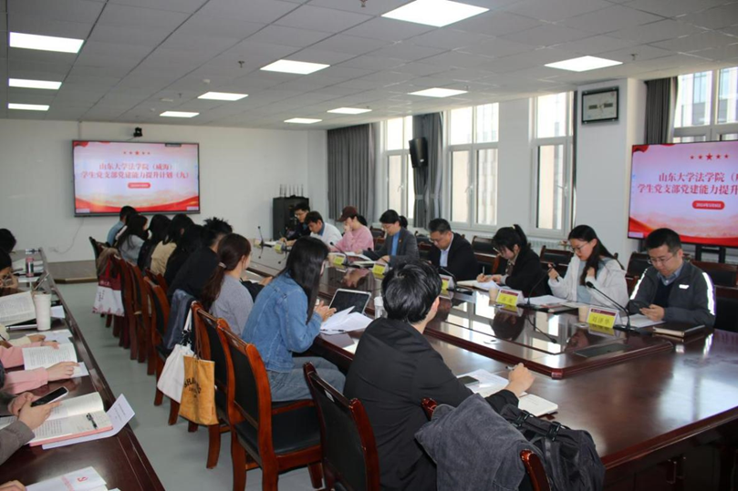 为全面贯彻落实党的二十大精神,深入推进党纪学习教育的安排部署,持续加强党员的纪律意识,5月8日下午,法学院(威海)举办学生党支部党建能力提升计划(第九期)。学院党委副书记侯丽娜、党务秘书时珊、全体辅导员、学生党支部书记和支部委员、各年级学生党建骨干参加会议。