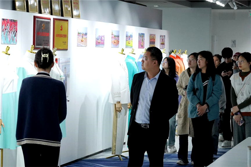 在迪尚集团有限公司的行程中,同学们在工作人员的介绍下观看了迪尚集团创新发展概况的视频短片,在迪尚公司“信誉、公平、机制、务实”的经营理念中体悟迪尚公司从贸易到多元化经营的跨越之路;随后,同学们依次参观了企业信息化展厅、面料馆、数据资源共享中心、成衣馆等现代化展馆,深刻感受到了迪尚集团在设计领域的实力和创新能力;在工作人员的讲解中,从服务“国之大者”火速转产医用防护服,到圆满完成庆祝中国共产党成立100周年大会、北京冬奥会等多项服装保障重大政治任务的实例中,同学们了解到迪尚集团坚持以党建为引领、以社会担当为使命的发展理念,自觉将企业发展融入国家战略和社会需要的责任与担当,在充分展现公司的设计理念与实力的同时,也为同学们的职业规划和人生选择提供了重要参考。