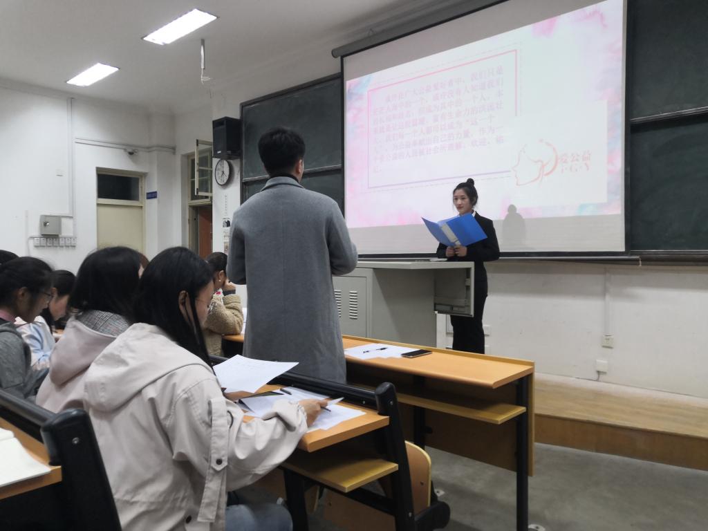 11月22日晚,法学院爱公益协会“爱公益LOGO设计大赛”决赛在图东教学楼219教室举行。法学院2017级辅导员逄伟群老师、爱公益协会指导老师刘佳老师和艺术学院2019级视觉传达专业班班主任肖玉鹏学长参加了本次决赛活动。