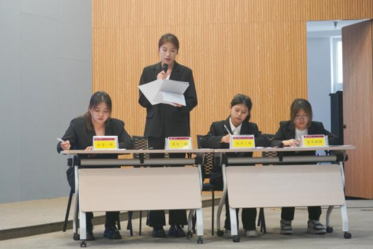 评委老师从抓住核心破题立论、结合专业深入延展等方面进一步点评,结合辩手们的现场表现,从逻辑思维、对辩方法、表达技巧、团队合作等方面开展实战指导,极大增强了辩手们的专业基底和辩论技能。经过激烈角逐,“辩法日韵队”获得冠军,“计法论衡队”获得亚军,“双语法阵队”获得季军,“辩法日韵队”辩手史甲爱获得“最佳辩手”称号。