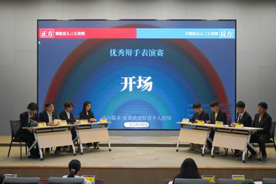 正式决赛前,首先由校区各学院优秀辩手带来一场精彩绝伦的表演赛。双方辩手围绕“要/不要给盲人三天光明”的辩题在场上唇枪舌剑,展现出高超的辩论技巧和深厚的知识底蕴,为后续决赛的新生辩手们树立起了模范榜样。