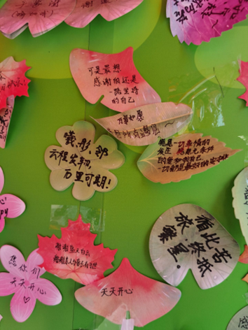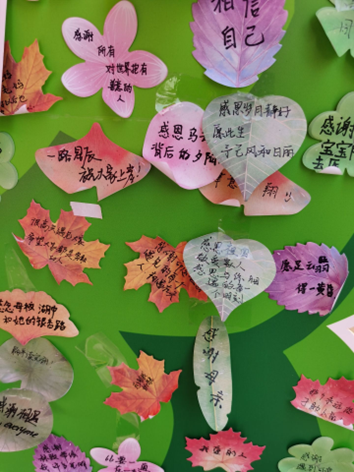 活动吸引了来自不同学院的463名同学的踊跃参与,大家在各式各样的“树叶”便签纸上写下内心深处最真挚的祝愿与鼓舞人心的话语,有对伟大祖国护佑人民安宁的感恩,有对父母养育之心的感恩,有对老师诲人不倦的感恩,也有对朋友同窗互相陪伴鼓励的感恩。再将这些寄语贴在“感恩之树”上,无数“树叶”汇聚成“感恩之树”的脉络,生生不息。