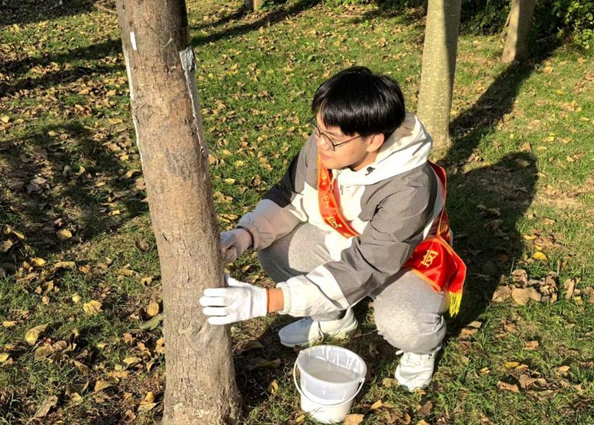 后勤管理处第二党支部书记于德军讲解了树木涂白的意义、方法、标准等注意事项及操作要领,确保每位参与者都能掌握涂白技巧。在老师的精心指导与协助下,同学们为每一棵树木认真刷涂白色油漆,保证油漆均匀地覆盖在树皮表面。一番忙碌过后,此次实践活动圆满落幕,在保证美观的前提下,为一百余棵杨树提供了防治虫害的有力保障。同学们用实际行动践行了环保理念,为建设美丽校园贡献了自己的力量。