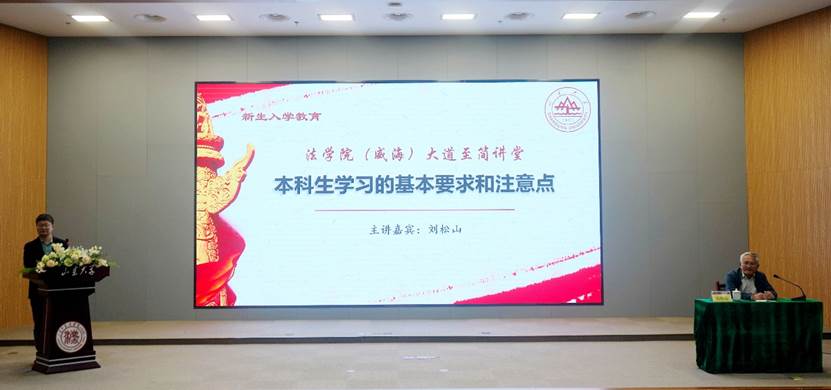 刘松山结合自身求学经历,勉励新生们在大学期间着力培养想象力和创造力,锻炼联想思维,避免成为“学习的机器”。在学习态度方面,他告诫新生切勿陷入“比拼”模式陷阱,囿于各种奖项与名誉,要避免“胜骄败馁”的失衡心态,做纯粹的学问;同时,要破除“名人崇拜”,保持质疑精神,塑造明辨能力。在学习技巧上,他强调阅读专著或文献要从“大”处着眼,把握大体框架与主体精神,学会抓住问题的要害与关键,提升学习效率;大学学习应摒弃中学封闭模式,注重团队合作,通过观点碰撞相互启发,突破标准,探寻多个答案。法学不是孤立的学科,刘松山鼓励新生们多方培养兴趣点,拓宽视野,建议新生培养阅读、看报习惯,分析时事问题,关注社会热点,提高政治素养,使法学研究和时代发展脉络紧密相连。最后,他寄语新生要培养健康的人格,养成体贴宽容之心,愉快度过大学生活。