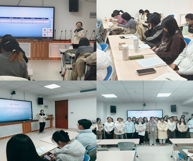 在“揭开情绪的面纱”环节中,李海静用冥想和简单测试情绪状态的方式带领同学们进行活动预热,让同学们对自己的阶段性情绪感知有一个大概的了解。而后,李海静通过列举诗文帮助同学们区分积极与消极情绪并以有趣的“粉红色的大象”心理学现象为引向同学们介绍如何处理情绪。同学们兴致勃勃,踊跃参与话题的讨论当中。接着,李海静以同学们学习应试中的焦虑情绪调节为重点,解读了同学们在学习应试中可能出现的焦虑情绪的产生机制及相关表现和特点,并通过互动和介绍相关专业心理学知识带领同学们在思考与交流中进一步了解学习应试中产生的各种情绪和处理方法。活动总结环节中,李海静鼓励同学们在生理健康的基础上关注心理健康,遇到情绪问题不要害怕和恐慌,积极寻求帮助,只有悦纳积极情绪,正确解读并处理负面情绪,才能成为自己情绪的主人。同学们纷纷表示赞同。最后,李海静与同学们合影留念,活动圆满结束。