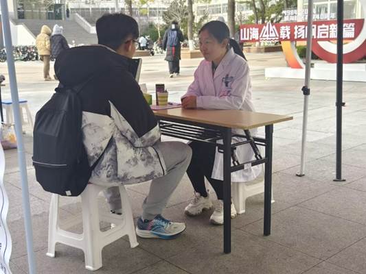 活动现场,三位心理专家采用一对一的形式,耐心倾听同学们的心理困扰,凭借丰富的临床经验和深厚的专业素养,细致地解答了同学们在学习、睡眠、情绪等方面的问题,并针对性地提供了支持和指导,为同学们搭建起一座理解与支持的桥梁。此外,丛艳平医生还通过康复按摩疗法,帮助同学们舒缓头痛、肩腰酸痛等躯体不适症状,释放压力。三位医生的专业素养和饱含爱的态度得到了大家的一致肯定。