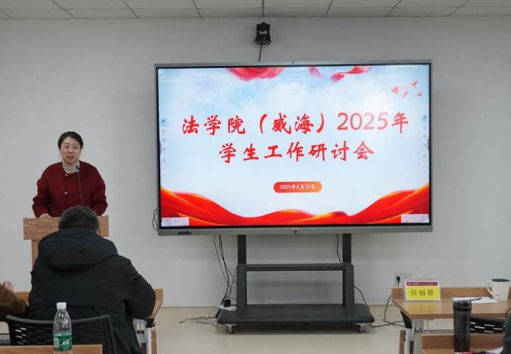 为全面总结学院2024年工作成效,科学谋划2025年发展路径,进一步提升育人工作质量,法学院(威海)于2月15日召开2025年学生工作研讨会。学院党委副书记侯丽娜、团委书记时华忠、全体辅导员、班级学生骨干代表、学生会及研究生会骨干代表90余人参加会议。