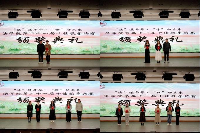 经过评选,宣容瀚获得法学院(威海)第二十一届十佳歌手大赛一等奖,荣获“歌王”称号;张玥、邢笑函获得二等奖;李柏彤、王淑仪、杨惠获得三等奖;陈惠子、綦素瑶、赵金凯、郭佳丽获得优秀奖。