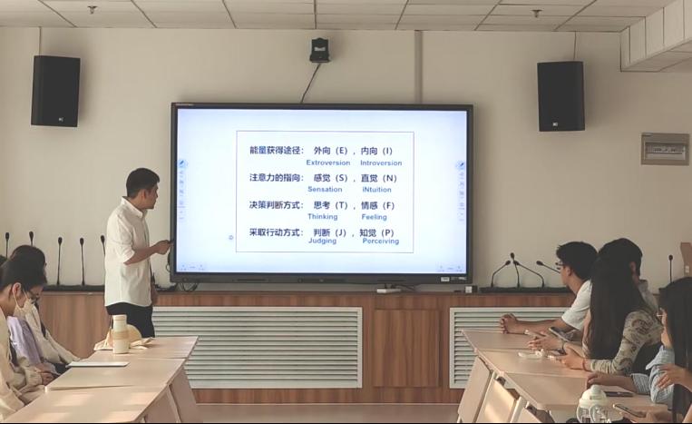首先,周晓政老师对本次讲座的目的和主题进行了简要介绍。根据时事热点,通过讲解个人特质、职业信息与理想工作之间的紧密联系,同时结合生动实例,周晓政老师向同学们系统阐述了MBTI性格测试的四个维度,详细说明了不同性格类型在职业选择中的适配特征。随后,周老师列举了大学的五条代表性发展路径,为同学们在面对迷茫和焦虑等常见问题时提供了切实可行的解决方法。
