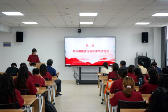 第六期“新蕾计划”优秀学员代表董静怡以九个“有”字概括了自身的成长与收获,鼓励新学员们把握宝贵机遇,全面提升综合能力。新一届团学组织负责人代表王淑仪从学生骨干的四个“意识”出发,表达了服务同学、奉献集体的坚定决心和庄重承诺。