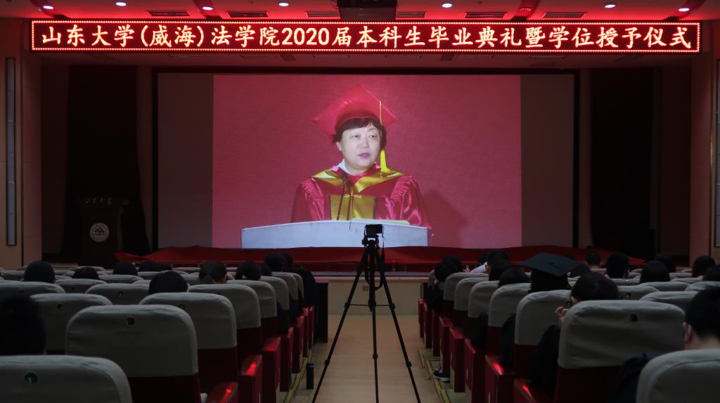6月19日上午,法学院于闻天楼东报告厅举行2020届本科生毕业典礼暨学位授予仪式。2020届全体本科毕业生参加典礼,威海校区常务副校长韩建新、法学院党委书记汪全胜、院长肖金明和教师代表、全体辅导员出席典礼。老师与毕业生们通过观看网络视频直播的形式,共同见证一校三地的毕业盛典。