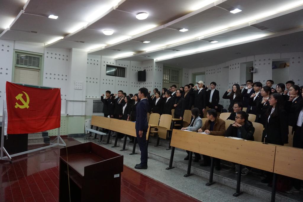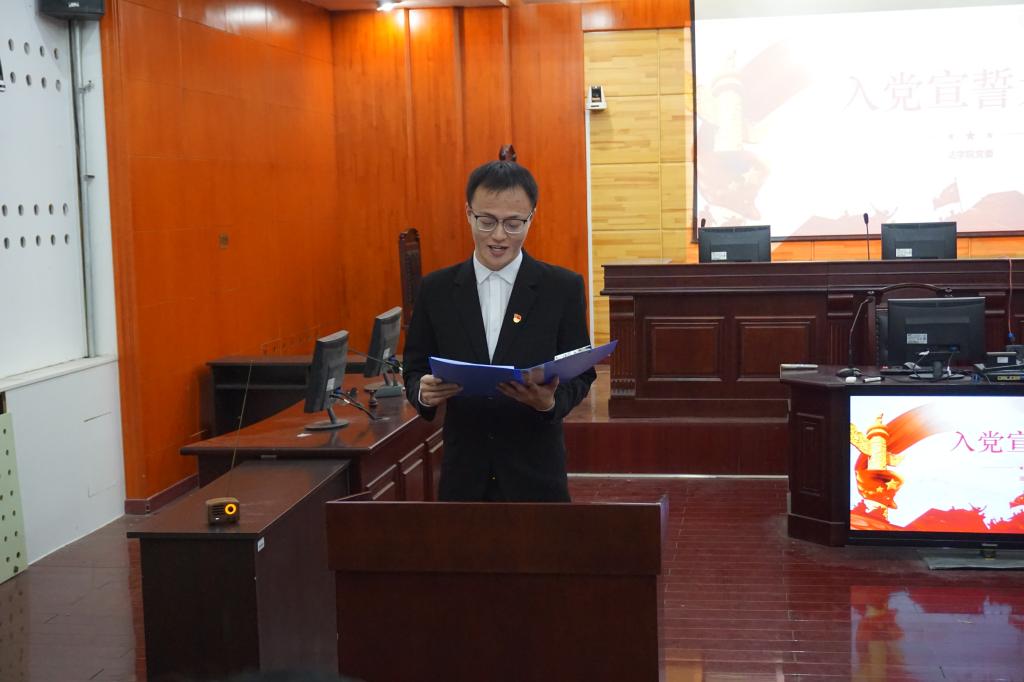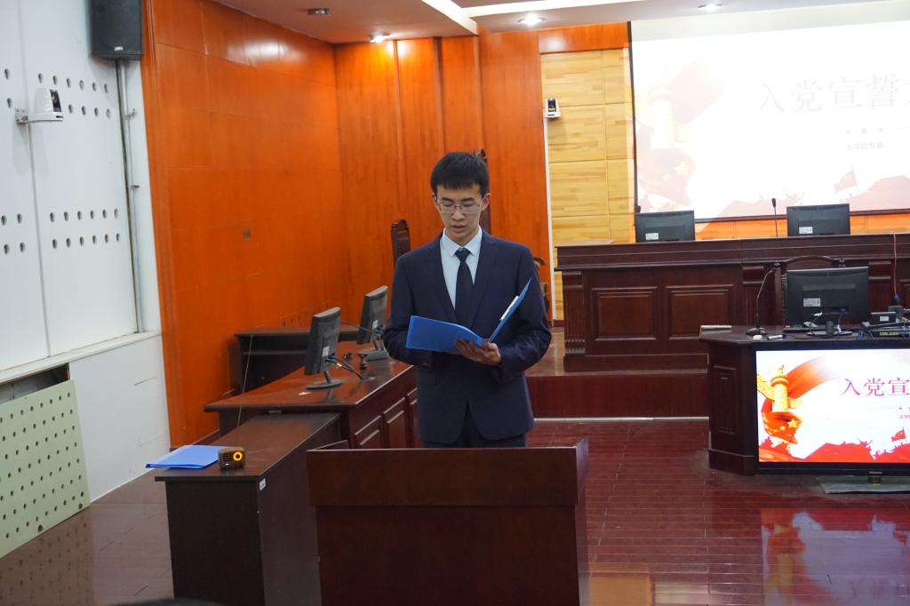 12月16日下午,法学院于模拟法庭举办学生党员入党宣誓仪式。院党委书记汪全胜、副书记侯丽娜,院党委组织员牛志强,法学院辅导员高世源、刘泽华以及全体新入党的学生党员参加宣誓仪式。