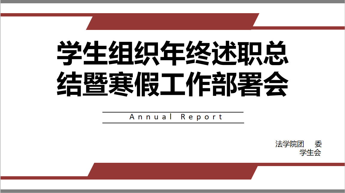 会上,团委副书记和学生会主席团成员就各自主管方面的工作开展情况进行述职,同时对学生组织整体工作提出具有建设性的意见和建议,进一步加强组织建设。团委、学生会十一个部门的工作人员依次对本部门上学期工作进行总结与展望,分别从部门制度建设、干事能力培养、工作理念思考、未来工作规划等方面展开汇报。在个人述职环节中,九位工作人员主要从工作感悟与反思总结展开阐述。其中,组织部工作人员邱欣彤结合自身工作经历,分享了自己在过去一年中体悟到点滴欣喜。她表示,作为学生干部,不论在生活还是学习中我们都应该脚踏实地、稳扎稳打、吸取经验、进步不止。在寒假工作部署中,刘泽华首先对各位学生骨干过去一学期的辛勤工作表示感谢,肯定了各位工作人员的付出与进步。他指出,本次述职总结会议是为了让同学们回首过去、把握现在、展望未来,并向各位学生骨干提出建议,他希望同学们明确自身定位,不忘初心、牢记使命,铭记全心全意为学生服务宗旨,深入到学生中去。他强调,学生组织应加强政治性、群众性、先进性,强化机构改革,打造服务型学生会和思想引领型团委,同时各部门要加强骨干建设,培养优秀学生干部。最后,刘泽华表示,在未来的工作中机遇定与挑战并存,希望同学们能够继续保持积极饱满的精神态度,共同将法学院学团组织建设推向新的高度。