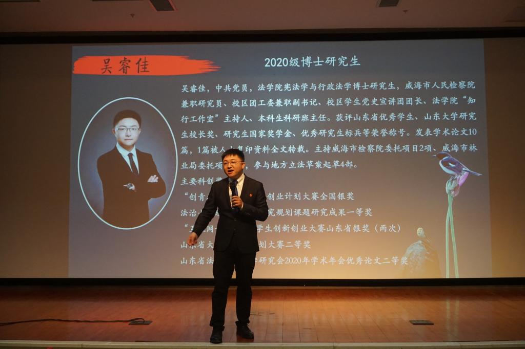 为展现法苑学子求知创新、探索科研的精神品质,增强同学们的创新意识和科研热情,营造法学院浓厚的科创氛围,5月10日晚,法学院第十五届五四青年科学报告会在闻天楼东报告厅举行。法学院科技创新工作领导小组组长牛文军、副组长张乐、法学院党委副书记侯丽娜、辅导员高世源、于金涵出席了本次会议,星火宣讲团成员吴睿佳和陆晓雅、第十四届科研立项获奖团队代表罗斌、第十五届科研立项团队代表、第十二届科研助理、20级全体同学、19级各班科创委员及班级代表、法学院学生会学术与创新中心全体成员参加了本次会议。
