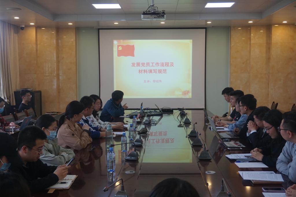 会议伊始,邬绍伟从入党工作流程和规范填写材料两方面向与会人员展开指导,他着重强调了入党申请书、思想汇报、考察表、个人自传、政审材料、入党志愿书的填写方式与填写内容,并通过例举错误的案例,深入浅出的向与会学生阐述了填写的相关注意事项,从而帮助学院提升相关审核的正确率。时华忠对本次会议进行总结,鼓励与会学生将会议内容践之以行。