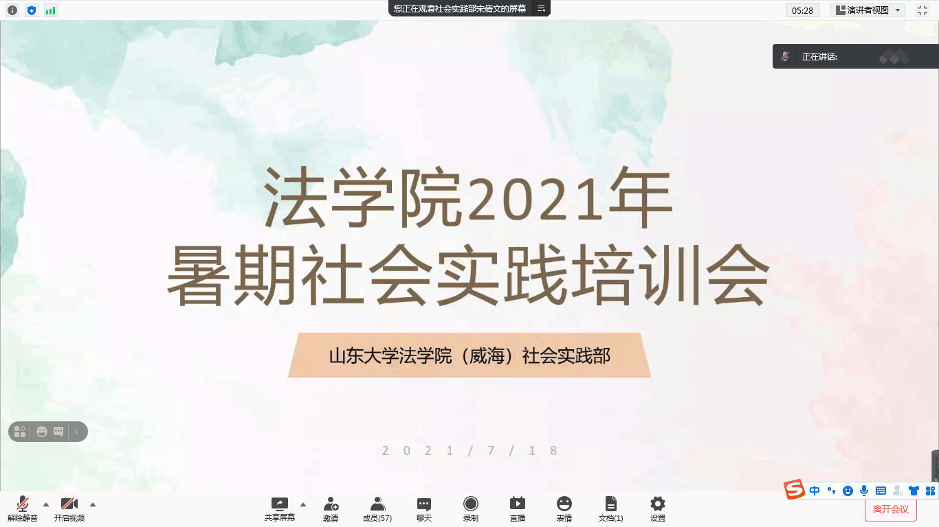 本次培训会传达了学校与学院对于暑期社会实践活动的规范要求,帮助各团队成员对社会实践中的安全要求及相关注意事项有了更为清晰透彻的了解,为法学院暑期社会实践活动的开展提供了有效指导。